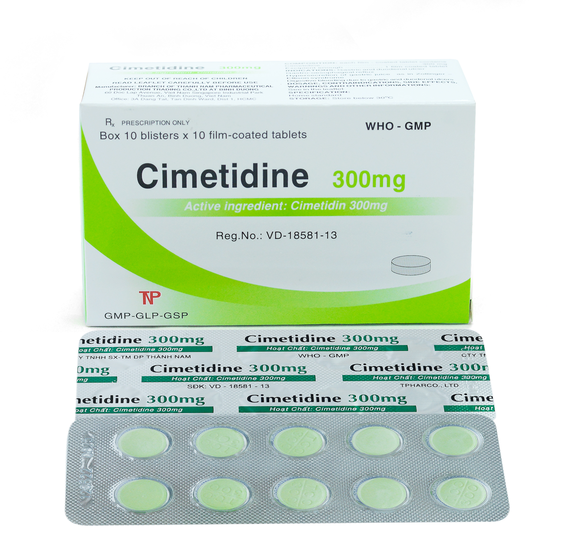 Thuốc này chỉ dùng theo đơn thuốc.Để xa tầm tay trẻ em.Đọc kỹ hướng dẫn sử dụng trước khi dùng.THÀNH PHẦN:Mỗi viên nén bao phim chứa:Thành phần dược chất: Cimetidin ………………………………… 300 mgThành phần tá dược: Tinh bột sắn, Avicel PH101, Natri starch glycolat, PVP.K30, Gelatin, Magnesi stearat, Talc, HPMC 2910, PEG 6000, Dầu Thầu dầu, Titan dioxyd, Tartrazin, Màu xanh patent, Ponceau 4R.DẠNG BÀO CHẾ: Viên nén tròn bao phim, màu xám nhạt, một mặt có chữ “TCO/300”, một mặt trơn.CHỈ ĐỊNHĐiều trị ngắn hạn:Loét dạ dày hay tá tràng tiến triển.Điều trị chứng trào ngược dạ dày – thực quản gây loét. Điều trị các trạng thái bệnh lý tăng tiết dịch vị như hội chứng Zollinger – Ellison.CÁCH DÙNG, LIỀU DÙNGCách dùng: Dùng theo đường uống. Uống thuốc vào bữa ăn và trước lúc đi ngủ.Liều dùng:Người lớn:Trị loét dạ dày, tá tràng : Dùng liều duy nhất 800mg/ngày, vào buổi tối trước lúc đi ngủ, uống ít nhất trong 4 tuần