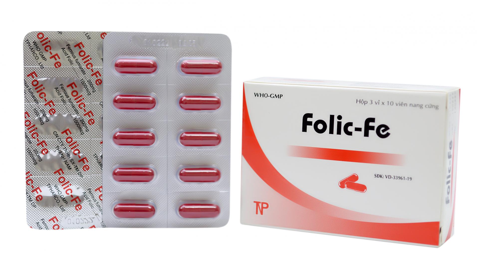 Hướng dẫn cách xử trí ADR Có thể hạn chế các tác dụng không mong muốn không thường xuyên bằng cách uống liều thấp, sau tăng dần, hoặc uống cùng một ít thức ăn (như vậy sẽ giảm hấp thu sắt). QUÁ LIỀU VÀ CÁCH XỬ TRÍ Quá liều sắt là một trường hợp khẩn cấp đòi hỏi sự chăm sóc y tế khẩn. Lượng đưa vào cơ thể 75mg/kg sắt nguyên tố được coi là cực kỳ nguy hiểm đối với trẻ nhỏ. Triệu chứng: Triệu chứng ban đầu của quá liều bao gồm buồn nôn, nôn mửa, tiêu chảy, đau bụng, thổ huyết, chảy máu trực tràng, ngủ lịm và trụy tuần hoàn. Tăng đường huyết và nhiễm toan chuyển hóa có thể xảy ra. Tuy nhiên, nếu nghi ngờ quá liều, nên điều trị ngay lập tức. Trong trường hợp nặng, sau giai đoạn tiềm ẩn, tái phát có thể xảy ra sau 24 - 48 giờ, biểu hiện bằng hạ huyết áp, hôn mê, hạ thân nhiệt, hoại tử tế bào gan, suy thận, phù phổi, tắc nghẽn mạch máu lan tỏa, rối loạn đông máu và / hoặc co giật. Trong nhiều trường hợp, hồi phục hoàn toàn có thể phức tạp do các tác động lâu dài như hoại tử gan, viêm não có độc, tổn thương hệ thần kinh trung ương và hẹp môn vị. Xử trí: Trẻ em: 1. Gây nôn như dùng siro ipeca. 2. Nên gây nôn bằng cách rửa dạ dày với dung dịch desferrioxamin (2g/l). Sau đó, giữ lại dung dịch desferroxamin 5g/ 50 - 100ml nước trong dạ dày. Không nên gây ra tiêu chảy ở trẻ nhỏ vì có thể nguy hiểm. Giám sát bệnh nhân liên tục để phát hiện ra khả năng gây ói mửa; dự phòng duy trì thiết bị hút và thở oxy khẩn cấp trong trường hợp cần thiết. 3. Ngộ độc nặng: Khi có sốc và/hoặc hôn mê với nồng độ sắt huyết thanh cao (sắt huyết thanh > 90umol/l) cần phải tiến hành các biện pháp hỗ trợ ngay cộng với truyền tĩnh mạch desferrioxamin. Desferrioxamin 15mg/kg thể trọng đến tối đa 80mg/kg/24 giờ, nên truyền tĩnh mạch chậm mỗi giờ. Cảnh báo: Hạ huyết áp có thể xảy ra nếu tốc độ truyền quá nhanh. 4. Ngộ độc ít nghiêm trọng: khuyến cáo sử dụng tiêm bắp desferroxamin 1g 4-6 giờ. 5. Nồng độ sắt huyết thanh nên luôn được theo dõi. Người lớn: Điều trị quá liều sắt trong thời kỳ mang thai giống như bệnh nhân không mang thai và nếu được chỉ định lâm sàng, điều trị bằng desferrioxamin không được trì hoãn. 1. Gây nôn. 2. Có thể cần rửa dạ dày để loại bỏ thuốc trong dạ dày. Nên sử dụng dung dịch desferrioxamin (2g/l). Sau đó đưa dung dịch desferrioxamin 5g/50-100ml nước vào dạ dày rỗng. Giám sát bệnh nhân liên tục để phát hiện khả năng có thể bị ói mửa; dự phòng duy trì thiết bị hút và thở oxy khẩn cấp trong trường hợp cần thiết. 3. Nên uống mannitol hoặc sorbitol để làm trống ruột non. 4. Khi có sốc và/hoặc hôn mê với nồng độ sắt huyết thanh cao (> 142umol/l), cần phải tiến hành các biện pháp hỗ trợ ngay cộng với truyền tĩnh mạch desferrioxamin. Liều khuyến cáo desferrioxamin truyền tĩnh mạch chậm là 5mg/kg/giờ đến tối đa 80mg/kg/24 giờ. Cảnh báo: Hạ huyết áp có thể xảy ra nếu tốc độ truyền nhanh. 5. Ngộ độc ít nghiêm trọng: Tiêm bắp deferrioxamin 50mg/kg đến liều tối đa 4g. 6. Nồng độ sắt huyết thanh nên luôn được theo dõi. ĐẶC TÍNH DƯỢC LỰC HỌC Nhóm dược lý: Sắt kết hợp với acid folic. Mã ATC: B03AD. Có bằng chứng cho thấy một liều hàng ngày 100 mg sắt nguyên tố dưới dạng muối sắt là đủ để ngăn ngừa sự phát triển thiếu sắt ở các bà mẹ tương lai. Nếu thiếu sắt nhẹ khi bắt đầu sử dụng viên Folic-Fe sẽ được khắc phục bằng cách tăng hấp thu sắt. Nhu cầu folat hàng ngày tăng mạnh trong ba tháng cuối của thai kỳ, và có bằng chứng về sự suy yếu ở người mẹ. Để đảm bảo nồng độ folat ở mô bình thường ở người mẹ sau khi sinh, cần bổ sung hàng ngày khoảng 300 microgam trong ba tháng thứ hai và thứ ba của thai kỳ. Điều này không làm mờ hình ảnh máu của bệnh thiếu máu ác tính addison. ĐẶC TÍNH DƯỢC ĐỘNG HỌC Hấp thu: Sắt được hấp thu chủ yếu ở tá tràng và hỗng tràng. Acid folic được hấp thụ chủ yếu ở đoạn đầu ruột non. Phân bố: Lượng acid folic hấp thu từ chế độ ăn bình thường được phân phối nhanh chóng đến các mô trong cơ thể. Chuyển hóa: Hấp thu được hỗ trợ bởi acid tiết ra từ dạ dày và dễ dàng thực hiện hơn khi sắt ở trạng thái muối sắt. Các polyglutamat folat được khử liên hợp thành monoglutamat trong quá trình hấp thu. Acid folic nhanh chóng xuất hiện trong máu và liên kết rộng rãi với protein huyết tương. Khi một lượng acid folic lớn hơn được hấp thu, một tỷ lệ cao được chuyển hóa ở gan thành các dạng folat hoạt động khác và một số được tích trữ dưới dạng folat khử và methyl hóa. Thải trừ: Một số lượng lớn folat được thải trừ nhanh qua nước tiểu và khoảng 4 - 5 microgam được bài tiết hàng ngày qua nước tiểu. QUI CÁCH ĐÓNG GÓI : Hộp 3 vỉ x 10 viên. Bảo quản : Bảo quản nơi khô mát, tránh ánh sáng, nhiệt độ dưới 30oC Hạn dùng : 36 tháng kể từ ngày sản xuất.