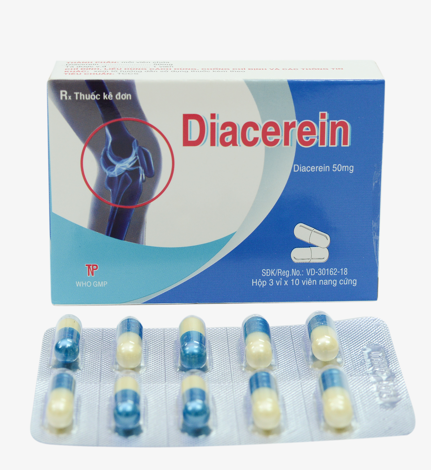 Thành phần dược chất: Diacerein ………………… 50 mg