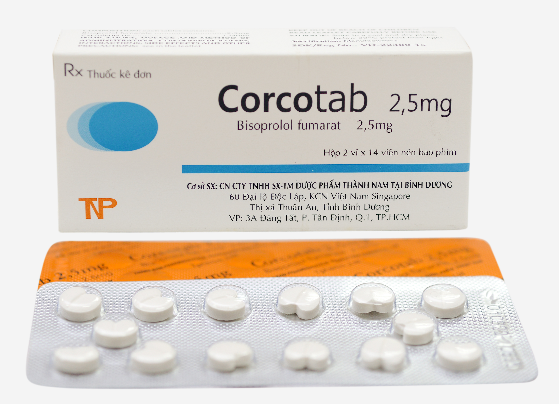 Thuốc này chỉ dùng theo đơn thuốc. Để xa tầm tay trẻ em. Đọc kỹ hướng dẫn sử dụng trước khi dùng THÀNH PHẦN: Mỗi viên nén bao phim chứa: Thành phần dược chất: Bisoprolol fumarat ………………………… 2,5 mg Thành phần tá dược: Avicel PH101, Natri starch glycolat, PVP. K30, Talc, Magnesi stearat, HPMC 2910, PEG 6000, Titan dioxyd. DẠNG BÀO CHẾ: Viên nén hình trái tim bao phim màu trắng, có vạch “/” trên hai mặt. CHỈ ĐỊNH Điều trị tăng huyết áp. Cơn đau thắt ngực. Suy tim mạn tính ổn định, từ vừa đến nặng, kèm giảm chức năng tâm thu thất trái, phối hợp với các thuốc khác tùy thầy thuốc chỉ định CÁCH DÙNG, LIỀU DÙNG Cách dùng: Dùng theo đường uống. Liều dùng: Liều lượng của bisoprolol phải được xác định cho từng người bệnh và được hiệu chỉnh tùy theo đáp ứng của bệnh và sự dung nạp của người bệnh, thường cách nhau ít nhất 2 tuần. Điều trị tăng huyết áp và đau thắt ngực ở người lớn: Liều đầu tiên thường dùng 2,5 – 5 mg, một lần mỗi ngày. Có thể tăng dần liều được dung nạp tới mức tối đa 20 mg, một lần mỗi ngày. Điều trị suy tim mạn ổn định: Việc điều trị phải do một thầy thuốc chuyên khoa tim mạch theo dõi. Bắt đầu bằng một thời gian điều chỉnh liều, liều được tăng dần theo sơ đồ sau: - 1,25 mg/1 lần/ngày (uống vào buổi sáng) trong 1 tuần. Nếu dung nạp được, tăng liều: