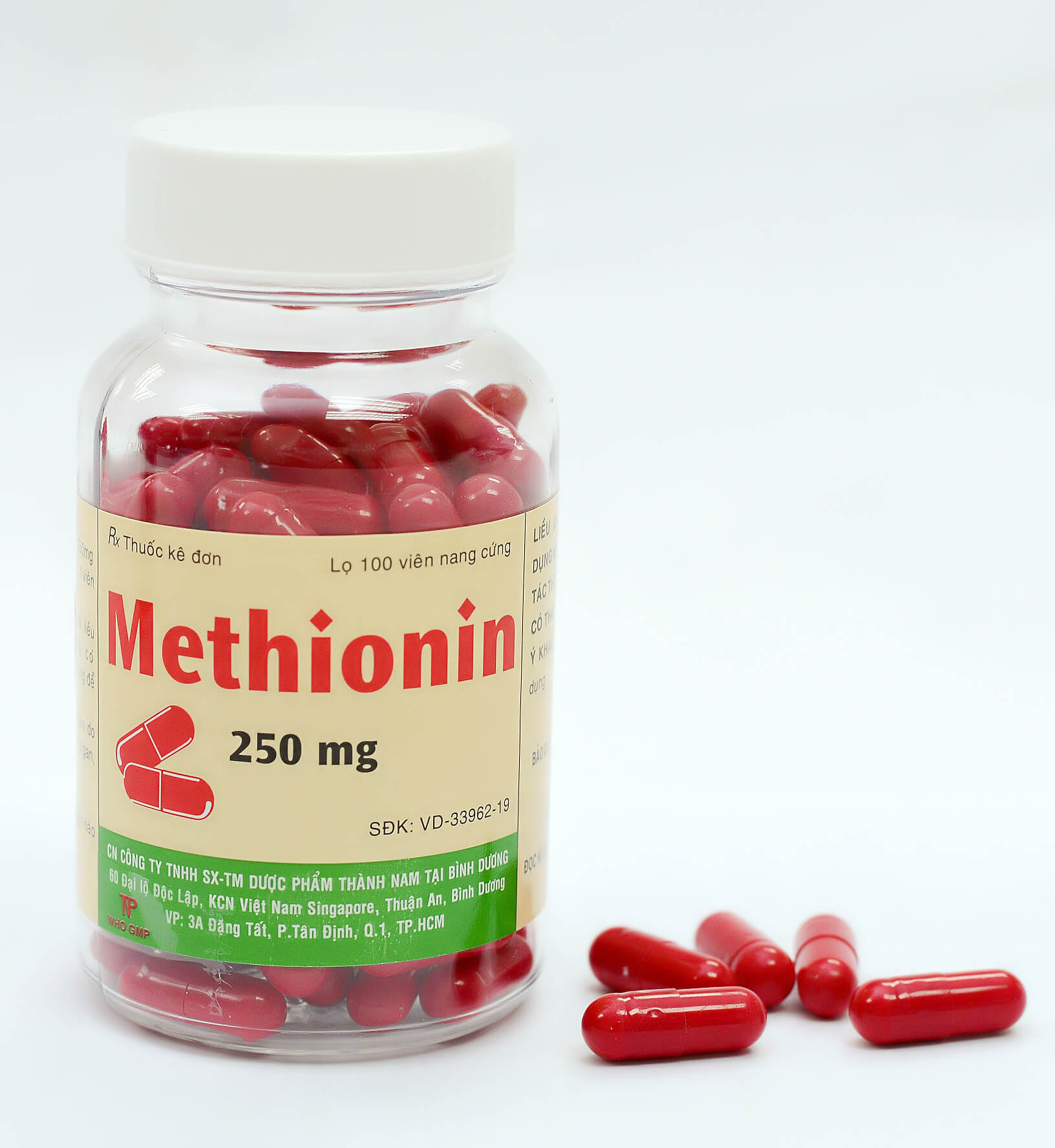 Thuốc này chỉ dùng theo đơn thuốc. Để xa tầm tay trẻ em. Đọc kỹ hướng dẫn sử dụng trước khi dùng THÀNH PHẦN: Mỗi viên nang cứng chứa: Thành phần dược chất: DL-Methionin …………………… 250 mg Thành phần tá dược: : Lactose monohydrat, PVP. K30, Magnesi stearat, Nang cứng số 1. DẠNG BÀO CHẾ: Viên nang cứng số 1, thân màu đỏ, nắp màu đỏ, bóng láng, bên trong chứa bột thuốc màu trắng. CHỈ ĐỊNH Chủ yếu dùng điều trị quá liều paracetamol khi không có acetylcystein. Ngoài ra còn dùng để toan hóa nước tiểu. Hỗ trợ điều trị trong viêm gan do nhiễm độc, viêm gan do virus, xơ gan, các chứng vàng da. CÁCH DÙNG, LIỀU DÙNG Cách dùng: Dùng theo đường uống. Nên uống trong bữa ăn hoặc khi đang no. Liều dùng: Điều trị quá liều paracetamol: Liều uống ban đầu là 2,5 g, tiếp theo cứ cách 4 giờ lại uống 2,5 g, như vậy 3 lần. Điều trị phụ thuộc vào nồng độ paracetamol trong huyết tương. Cần tiến hành điều trị chậm nhất từ 10 đến 12 giờ sau khi uống paracetamol. Các chỉ định khác: Người lớn: Mỗi lần uống 2 viên, ngày 3 lần. Trẻ em: theo sự chỉ dẫn của thầy thuốc CHỐNG CHỈ ĐỊNH Quá mẫn với bất kỳ thành phần nào của thuốc. Người bệnh bị nhiễm toan. Tổn thương gan nặng. CẢNH BÁO VÀ THẬN TRỌNG Ở những người bệnh đã bị suy gan, methionin có thể làm cho tổn thương gan nặng thêm. Cần thận trọng khi dùng methionin cho người bị bệnh gan nặng. Ở những người bệnh đã bị suy gan/tổn thương gan, methionin có thể làm bệnh về não do gan tiến triển mạnh. Không được dùng methionin để điều trị ngộ độc paracetamol nếu đã quá 12 giờ tính từ lúc uống thuốc quá liều. Cảnh báo về nguy cơ gây xấu hơn chứng xơ vữa động mạch, do methionin có thể gây tăng homocystein, đặc biệt là đối với bệnh nhân thiếu folat, vitamin B12 hoặc vitamin B6, hoặc bệnh nhân có tình trạng rối loạn sinh tổng hợp homocystein, gây nguy cơ tăng các bệnh tim và mạch máu. Cảnh báo tá dược lactose: Bệnh nhân mắc các rối loạn di truyền hiếm gặp về không dung nạp galactose, chứng thiếu hụt lactase Lapp hoặc rối loạn hấp thu glucose-galactose không nên dùng thuốc này. SỬ DỤNG CHO PHỤ NỮ CÓ THAI VÀ CHO CON BÚ Thời kỳ mang thai Chưa xác định được tính an toàn cho người mang thai. Thận trọng cho phụ nữ mang thai. Thời kỳ cho con bú: Chưa xác định được tính an toàn cho trẻ bú mẹ. Thận trọng cho phụ nữ đang cho con bú. ẢNH HƯỞNG CỦA THUỐC LÊN KHẢ NĂNG LÁI XE, VẬN HÀNH MÁY MÓC Thuốc có thể gây ngủ gà nên chú ý khi dùng cho người đang lái xe và người đang vận hành máy móc. TƯƠNG TÁC, TƯƠNG KỴ Tương tác Methionin và levodopa: Methionin có thể làm giảm tác dụng của levodopa. Cần tránh dùng methionin liều cao ở người bệnh đang được điều trị bằng levodopa. Tương kỵ Do không có các nghiên cứu về tính tương kỵ của thuốc, không trộn lẫn thuốc này với các thuốc khác. TÁC DỤNG KHÔNG MONG MUỐN (ADR) Buồn nôn, nôn, ngủ gà, dễ bị kích thích. Gây nhiễm toan chuyển hóa và tăng nitơ huyết ở người bị suy chức năng thận. QUÁ LIỀU VÀ CÁCH XỬ TRÍ Không có dữ liệu về sử dụng thuốc quá liều, không dùng quá liều chỉ định của thuốc. Xử trí: Tích cực theo dõi để có biện pháp xử trí kịp thời. ĐẶC TÍNH DƯỢC LỰC HỌC Nhóm dược lý: Thuốc giải độc paracetamol. Mã ATC: V03AB26 Methionin là một acid amin thiết yếu có trong thành phần của chế độ ăn và trong công thức của các chế phẩm đa acid amin để nuôi dưỡng. Methionin tăng cường tổng hợp gluthation và được sử dụng thay thế cho acetylcystein để điều trị ngộ độc paracetamol đề phòng tổn thương gan. Methionin còn được dùng theo đường uống để làm giảm pH nước tiểu. ĐẶC TÍNH DƯỢC ĐỘNG HỌC Methionin được chuyển hóa ở gan. QUI CÁCH ĐÓNG GÓI : Lọ 100 viên. Bảo quản : Bảo quản nơi khô mát, tránh ánh sáng, nhiệt độ dưới 30oC Hạn dùng : 36 tháng kể từ ngày sản xuất. Tiêu chuẩn chất lượng : TCCS Sản xuất tại: CHI NHÁNH CÔNG TY TNHH SX-TM DƯỢC PHẨM THÀNH NAM TẠI BÌNH DƯƠNG. 60 Đại lộ Độc lập, KCN Việt Nam-Singapore, Thuận An, Bình Dương. ĐT: (0274) – 3767850 Fax: (0274) – 3767852 Văn phòng: 3A Đặng Tất, P. Tân Định, Q.1, TP. HCM |
